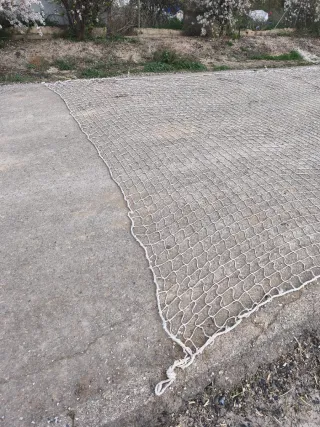 Se venden dos redes de seguridad para obra, de color blanco. - Medidas: 1,1 metros de ancho por 10 metros de largo cada una. - Material resistente para trabajos de construcción. Futbol, portería , tenis, pádel , voleibol, valla, campo, futbol sala, baloncesto rugby hacer hamacas porche toldo sombrage delimitar palomas gallinas pavos paja vaca andamio gatos