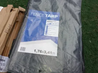 Lona ignífuga profesional para vallas de obra, con medidas de 1,76x3,41 metros. Fabricada con tejido de PE laminado y con protección contra el fuego. Ideal para delimitar espacios en eventos, agricultura, obras, etc. Tengo una nueva sin abrir y 9 que se han usado en un evento un fin de semana. - Tejido PE laminado. - Protección ignífuga DIN 4102 B1. - Ojales de aluminio de 12 mm cada 50 cm. - Resistente a la lluvia. Precio por unidad. El precio de una lona nueva es más de 20€. Si compras varias unidades, hago descuento. El precio del envío es para una lona. Si quieres más, te hago un pack con el precio del envío que toca.