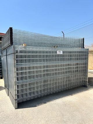 Conjunto de 8 vallas metálicas de obra, ideales para delimitar espacios o para construcción. - Material: Metal galvanizado. - Diseño de malla electrosoldada. - Estructura robusta. 8€/ud