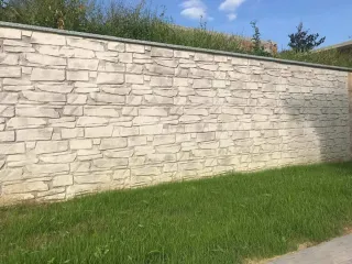 Revestimiento decorativo para paredes exteriores e interiores. - Acabado imitación piedra natural. - Ideal para fachadas, muros y vallas. - Duradero y resistente a la intemperie.