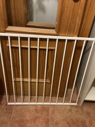 Valla metálica blanca. 67 cm x 68cm Ideal para colocar en puertas o pasillos. - Estructura resistente y segura. - Fácil de instalar.