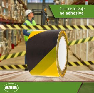 Cinta de balizaje alta visibilidad (amarillo/negro), 200m x 70mm. Resistente (LDPE) a roces y desgaste, ideal interior/exterior para acordonar, señalizar peligros o marcar restricciones. Fácil de atar a vallas/conos. Amig: 80 años en productos de ferretería y seguridad. #1745
