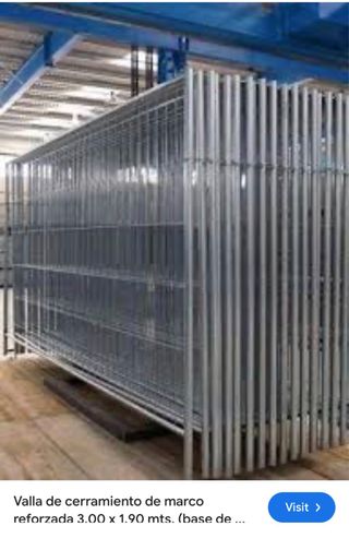 Conjunto de vallas metálicas galvanizadas, ideales para obras o eventos. - Material: Metal galvanizado. - Diseño: Malla electrosoldada con postes verticales. - Se hacen transporte por Madrid y alrededor - Medidas 3,50 x 1,90 - NO HAGO ENVÍOS