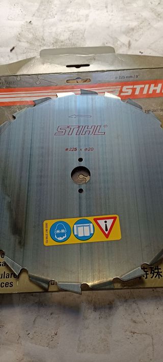 Disco de corte de la marca STIHL, con un diámetro de 225 mm y un orificio central de 20 mm. Ideal para trabajos de desbroce. - Diámetro: 225 mm (9) - Diámetro del orificio: 20 mm - Marca: STIHL