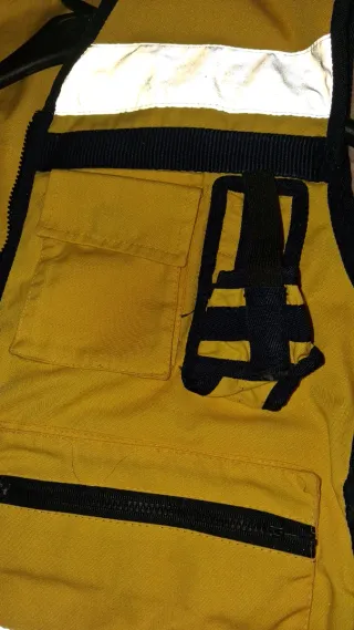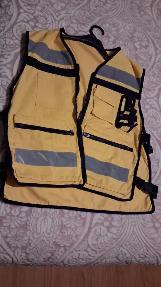 Chaleco de trabajo de alta visibilidad. - Diseño con múltiples bolsillos. - Cintas reflectantes para mayor seguridad. - Cierre de cremallera frontal. Como nuevo Envio a toda españa