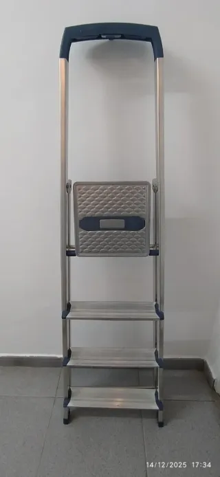 Escalera de aluminio, práctica y segura para el hogar. - Diseño plegable, para fácil almacenamiento. - Fabricada en aluminio resistente. Altura del peldaño superior 80cm Altura escalera plegable 150cm Peso máximo 150kg Nueva cuesta 90€