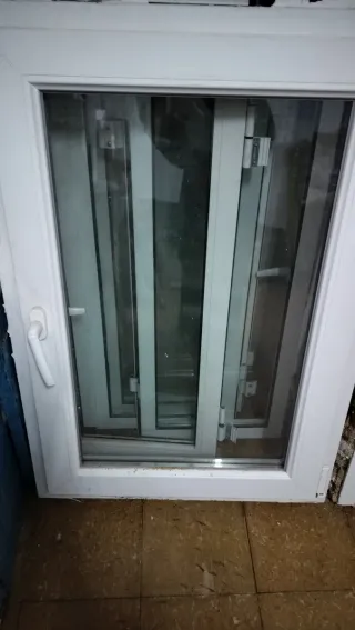 Ventana de aluminio en color blanco. Ideal para cualquier espacio. Con persiana y hueco para mosquitera Doble cristal, climalit Es oscilobatiente pero no abre, supongo que hay que hacer algún ajuste No envío, se puede ver sin compromiso Medida total 110x75 - Marco de aluminio. - Cristal transparente.