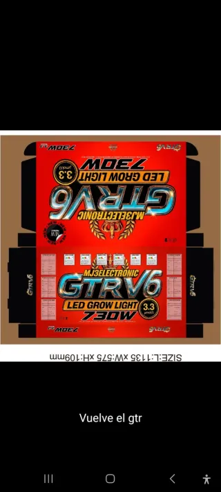 Foco LED MJ3 ELECTRONIC GTRV6 de 730W. - Modelo: GTRV6 - Potencia: 730W - Tipo de luz: LED Grow Light - Voltaje: 3.3