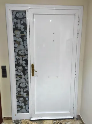 Puerta de entrada casa blanca, de aluminio.