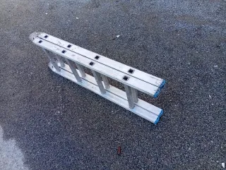 Escalera de tijera fabricada en aluminio, con una altura de 2,22 metros y 8 escalones. - Material: Aluminio. - Número de escalones: 8. - Altura: 2,22 metros.