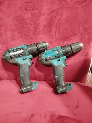 Se venden dos taladros Makita HP333D, ideales para piezas o para quien necesite repararlos. Pequeñitas pero matonas. Yo quería arreglarlas pero no tengo tiempo. No sé exactamente que les pasa, se le pone la batería y no funcionan simplemente. Negociable - Modelo: HP333D - Cantidad: 2 unidades - Uso: Para piezas o reparación