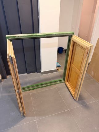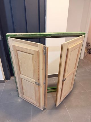 Ventana de madera de pino Medida 105 ancho alto 120 - Dos hojas abatibles. - Herrajes metálicos.