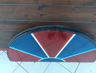 Pieza de cristal antigua con un diseño semicircular. Son dos unidades - Colores rojo, azul y blanco. - Borde negro.