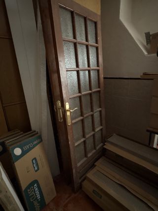 Puertas de madera maciza con cristales, solo necesitan una limpieza. El precio es por cada una de ellas. Tengo dos. Tambien tengo un marco y un anexo lateral para puerta amplia.