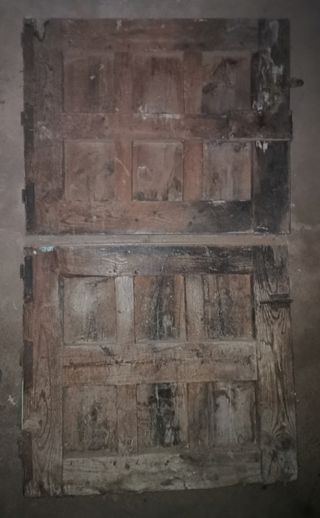 Dos puertas de madera maciza, con herrajes de hierro forjado, de una antigua iglesia. Cualquier información adicional que se requiera, por favor no dudéis en preguntar. Si se requiere el envío, este se estudiará a través de empresas de transporte - Diseño rústico y robusto. - Ideales para decoración o proyectos de restauración. - Cada puerta mide aproximadamente 2.5 metros de alto y 1 metro de ancho.