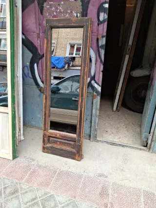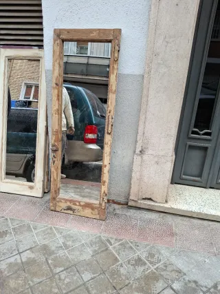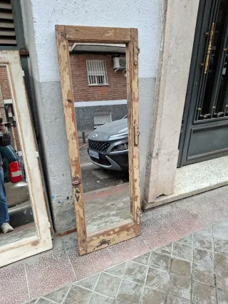 Par de espejos antiguos con marcos de madera. - ventanas antiguas restauradas y transformadas en espejos - Diseño alargado y elegante. - Combinan a la perfección con cualquier estilo decorativo. - medidas de cada espejo 172 × 56 cada espejo - se vende por unidad a 160€ ¡¡¡ se ha vendido el espejo de la derecha!!!! Solo queda a la venta el espejo de la izquierda