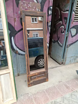 Precioso espejo antiguo con marco de madera desgastada y cristal. - ventana de madera con un acabado rústico y desgastado. - Cristal con reflejo nítido. - medidas 154 × 53'5