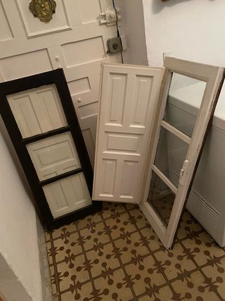 ##QUEDAN SOLO DOS HOJAS## Vendo conjunto de 4 hojas de contraventana interior estilo mallorquín, de madera maciza, en verde oscuro. 25€/unidad Usadas como separación entre cocina y salón. Ideal para proyectos DIY, decoración rústica, reformas vintage o crear un biombo original. • Cada hoja mide 108 x 49 cm • Lamas fijas • Herrajes incluidos (bisagras y pestillos antiguos) • Estado: usadas pero sólidas y funcionales Se venden juntas o por separado. A recoger en Sevilla centro (calle San Vicente) 25€/unidad Precio negociable si te llevas el lote completo.