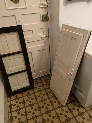 Puerta madera maciza, es antigua.Necesita lija y pintura. Solo me queda una. Mide 2'10 alto, 70 ancho, y 3'5 grosor