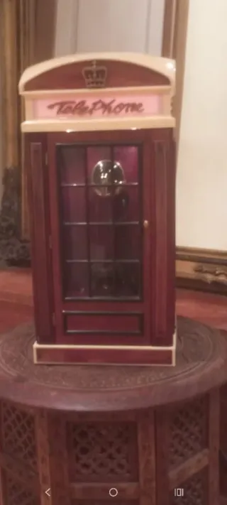 Cabina telefónica antigua con un diseño clásico y elegante. - Está como nueva - Estructura de madera oscura. - Detalles en color crema. - Ventana frontal con rejilla.
