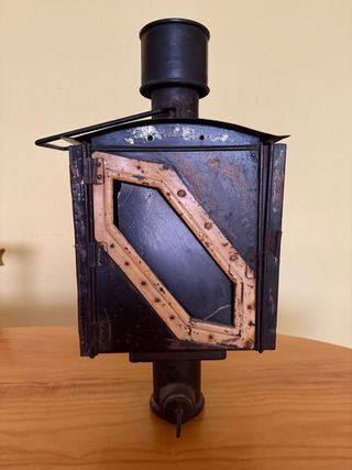 Bien conservado. Se escuchan ofertas. Farol ferroviario antiguo de Renfe. Pieza de colección con un diseño clásico. - Fabricado en metal. - Marco de madera en la ventana. - Chimenea superior.
