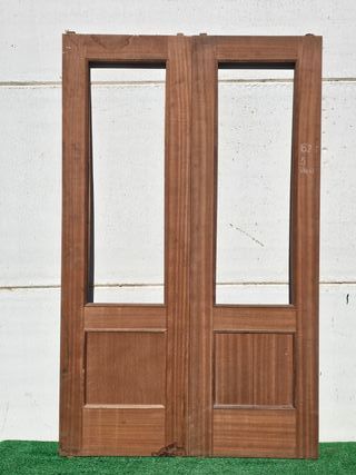Puerta cristalera de doble hoja para zagüan. Muy bien conservada. Medidas totales: 108 Ancho - 208 Alto (cm) Adjunto fotos de restauraciones similares realizadas. Todas nuestras puertas pueden ser restauradas, ampliadas y adaptadas a las medidas necesarias, así como enmarcadas. Además, se les puede añadir tiradores, llamadores, embellecedores y demás complementos de una amplia gama. El cliente puede elegir el acabado final a su gusto. Disponemos de más de 3000 puertas y portones antiguos. Pregunten precios sin compromiso.