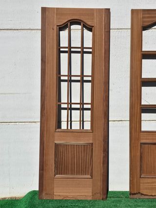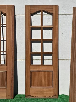 Puerta de interior en buen estado. Medidas totales: 62 Ancho - 203 Alto (cm) Se pueden combinar para formar cristaleras dobles. Hay 8 unidades idénticas. 19 euros cada hoja. Adjunto fotos de restauraciones similares realizadas. Todas nuestras puertas pueden ser restauradas, ampliadas y adaptadas a las medidas necesarias, así como enmarcadas. Además, se les puede añadir tiradores, llamadores, embellecedores y demás complementos de una amplia gama. El cliente puede elegir el acabado final a su gusto. Disponemos de más de 3000 puertas y portones antiguos. Pregunten precios sin compromiso.