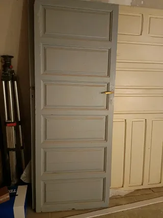 Puerta de interior en buen estado. Medidas totales: 71 Ancho - 208 Alto (cm) Se pueden combinar para formar cristaleras dobles. Hay 8 unidades idénticas. 19 euros cada hoja. Adjunto fotos de restauraciones similares realizadas. Todas nuestras puertas pueden ser restauradas, ampliadas y adaptadas a las medidas necesarias, así como enmarcadas. Además, se les puede añadir tiradores, llamadores, embellecedores y demás complementos de una amplia gama. El cliente puede elegir el acabado final a su gusto. Disponemos de más de 3000 puertas y portones antiguos. Pregunten precios sin compromiso.