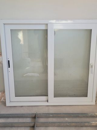 Ventana corredera de aluminio con marco blanco. Está nueva,se encuentra en el pasillo interior de una vivienda. - Ideal para proyectos de construcción o renovación. - Marco de aluminio resistente. Medidas: -Ancho 2,13. -Alto 1,19 Cada hoja mide 107,5 Si quieren más fotos pidanmelas. La ventana se encuentra en Bailén (Jaén).