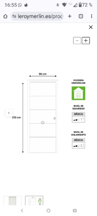 Puerta de entrada metálica serie Saga fresada, acabado blanco. - Apertura a izquierda. - Medidas: 210x90cm. - Apta para exterior.