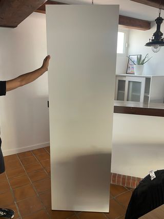 Puerta interior de color blanco con un diseño moderno. Bisagras ocultas para un acabado limpio 203x625x35 Tiene un pequeño picotazo en uno de los lados. Costo 270€ en Leroy Merlín Sin estrenar