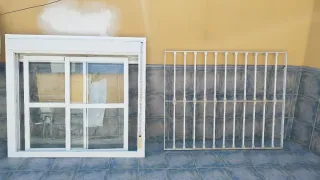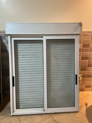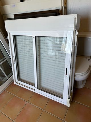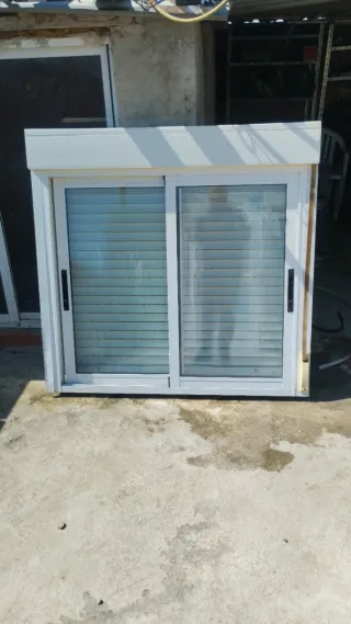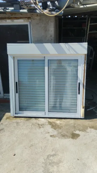 Ventana corredera de aluminio,2 mas como esa estam nuevas sin estrenar 1x1,17. - Marco de aluminio blanco. - Doble cristal. - Persianas enrollables integradas.