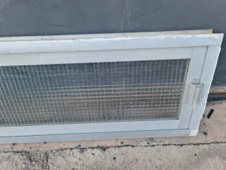 Ventana corredera de aluminio blanco con doble acristalamiento Climalit de vidrio carglas (no transparente). 66 cmts de ancho x 115,5 cmts de alto. Muy buenas condiciones. Especial para baños. Hay 4 unidades. Precio por unidad. [N] - Marco de aluminio blanco. - Doble vidrio Climalit. - Diseño de corredera.