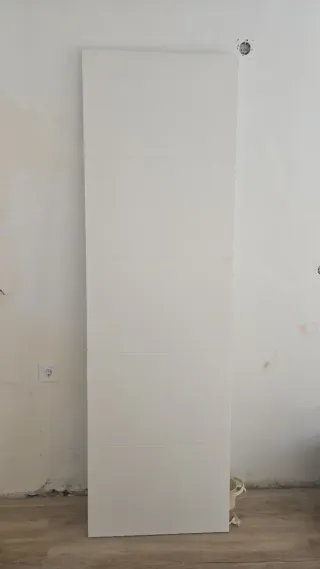 Vendo puerta de interior corredera, lacada en blanco, completamente nueva. Se colocó en una promoción nueva de viviendas, pero por reforma de demolición de una pared se decide eliminarla. Dimensiones: 203 cm (alto) × aprox. 100 cm (ancho) × 3.5 cm (espesor). Incluye tirador redondo plateado, algunos herrajes para instalación corredera, riel y guías. Estado: totalmente nueva, sin estrenar. Diseño moderno y elegante, con 5 paneles horizontales. Material macizo, lacado en blanco de alta calidad. Ideal para reformas, pisos nuevos o proyectos de interiorismo. DISPONIBLE UNA VEZ DESMONTADA (APROX. 1 DE MAYO DE 2026). Precio 50 €.