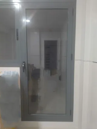 Puerta y ventana aluminio gris y cristal