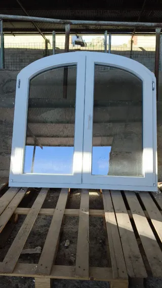 Ventana de PVC con forma de arco, puertas abatibles y cristal doble climalit PRECIO POR UNIDAD Ancho x alto: 130 x 129 x 7 También disponible otra igual pero le faltan los cristales SOLO RESERVO CON SEÑAL DISPONIBLES MÁS VENTANAS, BALCONERAS, VENTANAL, PUERTAS, PVC, ALUMINIO, ALUMINIO RPT... EN MI PERFIL 🚚 POSIBILIDAD DE TRANSPORTE NO INCLUIDO EN EL PRECIO
