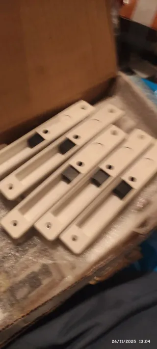 Se vende lote de más de 100 cierres para ventanas de aluminio. - Color blanco. - Diseño para embutir.