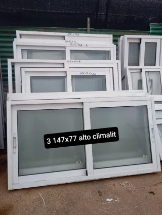 Ventanas de aluminio con doble acristalamiento Climalit.preguntar medidas - Medidas: 152 cm de ancho x 137 cm de alto. - Marco de aluminio blanco. - Sistema de corredera.
