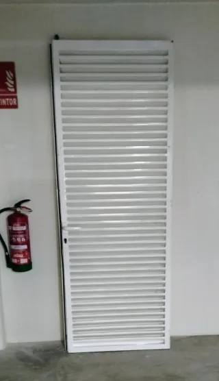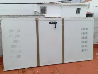 Conjunto de puertas de garaje fabricadas en hierro y chapa. - Materiales: Hierro y chapa. - Diseño: Estructura con lamas horizontales. 4 puertas medidas 64×2,95 Precio negociable Puerta blanca 2,88 por 2,10