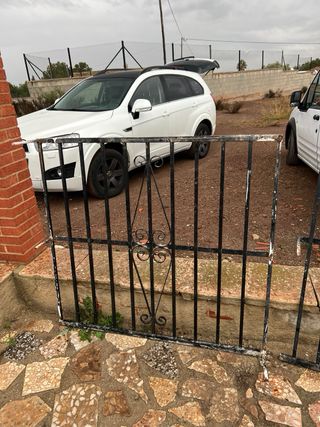 Puerta de hierro con un diseño clásico y robusto. - Material: Hierro. - Color: Negro. está algo deteriorada de hay su precio