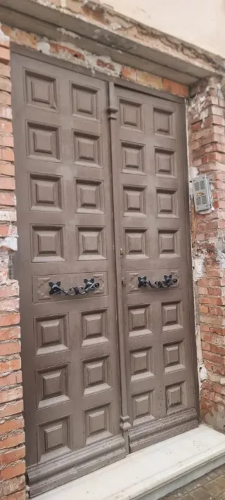 Puerta de hierro macizo con dos hojas. Mirando de frente, la puerta abre hacia adentro. Medidas 1,44 de anchox1,50 de alto. La cerradura y manivela funcionan perfectamente . No se hacen envíos y está en Cullera(Valencia) - Material: Hierro macizo.