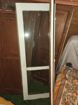Conjunto de dos puertas de mobila antiguas, ideales para proyectos de restauración o para dar un toque clásico a tu hogar. - Fabricadas en madera de mobila. - Diseño de dos hoja medidas 1m de ancho por 3,8 de alto cada hoja .