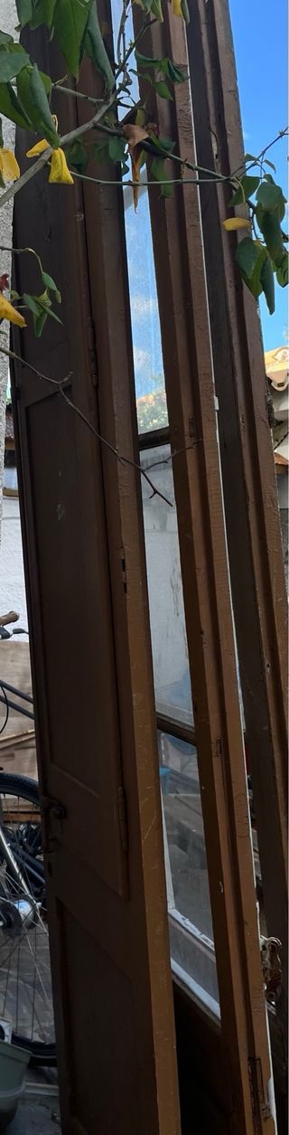 Conjunto de puertas y ventanas antiguas, elaboradas en madera. - Piezas con carácter y estilo rústico. - Ideales para proyectos de restauración o decoración vintage.