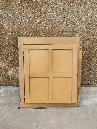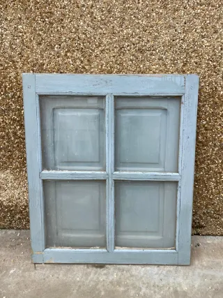 Ventana antigua de madera con cuatro huecos de vidrio y tapaluz.Recuperada de una obra de rehabilitación. Requiere reparación, carece de marco, Es muy bonita para una rehabilitación. Medidas 71x82cm