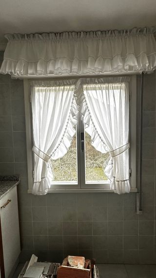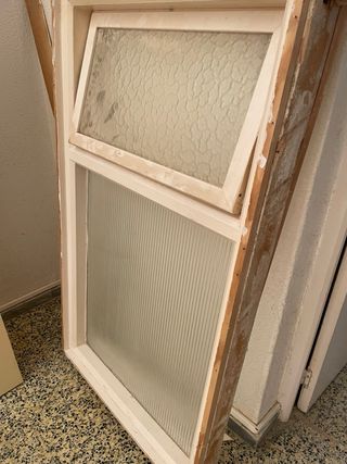 Ventanas de madera sin persiana. Todas están esmaltadas. Incluyen marco de madera y dos hojas con su cristal en buen estado. Medidas: - Cocina (blanco por dentro y narrón por fuera) 108cm alto x 97 cm ancho - Salón (marrón por dentro y por fuera) 108cm alto x 107cm ancho - Baño (blanco por dentro y marrón por fuera) cristal esmerilado antiguo 108cm alto x 80cm ancho - Dormitorio 1 (marrón por dentro y por fuera) 108cm alto x 97cm ancho - Dormitorio 2 (marrón por dentro y por fuera) 108cm alto x 93cm ancho Grosor de todas las ventanas 12cm 45€ cada una Ya están desmontadas