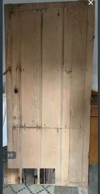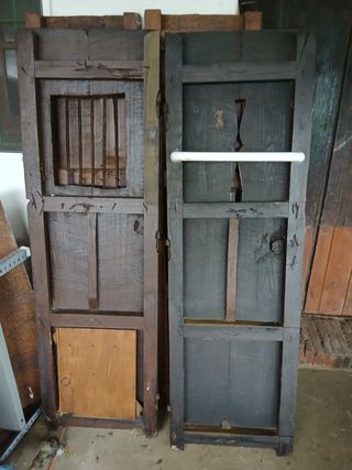 Puertas antiguas de castaño. La pequeña es otra madera. Presentan un diseño rústico y robusto. Muy bonitas para reutilizar. Preguntar por precios. Solo recogida local.