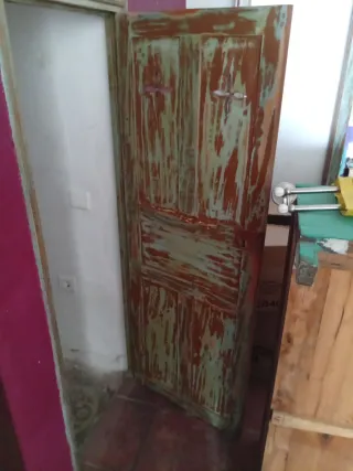 Puerta interior de madera maciza, ideal para casas antiguas o proyectos de restauración. Precio negociable, está para restaurar. Medidas , 200 de alto x 88 de ancho. Urge venta - Material: Madera mobila. - Estilo: Rústico y clásico.