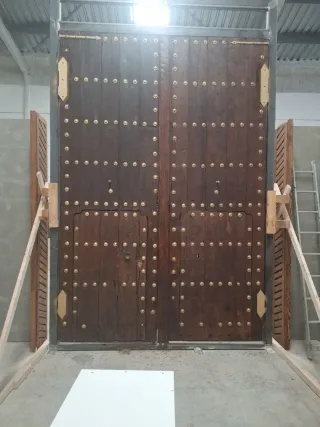 Espectacular portón antiguo de madera con detalles de herrajes. Telefono 674701267 - Diseño robusto y clásico. - Elaborado con madera de alta calidad. - Presenta herrajes metálicos decorativos.