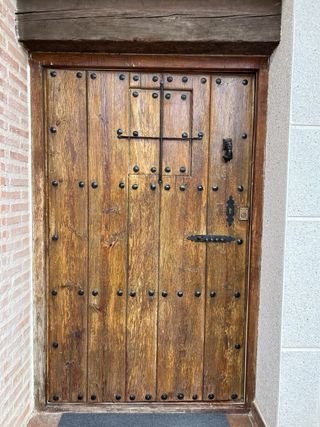 Conjunto de puertas antiguas, procedentes de una iglesia. Su diseño robusto y detalles ornamentales las hacen piezas únicas. - Madera oscura. - con barrotes de seguridad. Me - Estilo rústico y clásico. Las puertas son de madera de pino del año 1965 el precio exactamente no lo sabemos podemos aceptar ofertas