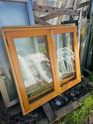 vendo ventana de madera. hay que cambiar cierre. tengo 2 unidades , a 55 euros cada una. tengo los tapajuntas también alto 105 ancho 120 Tel.689 717 530